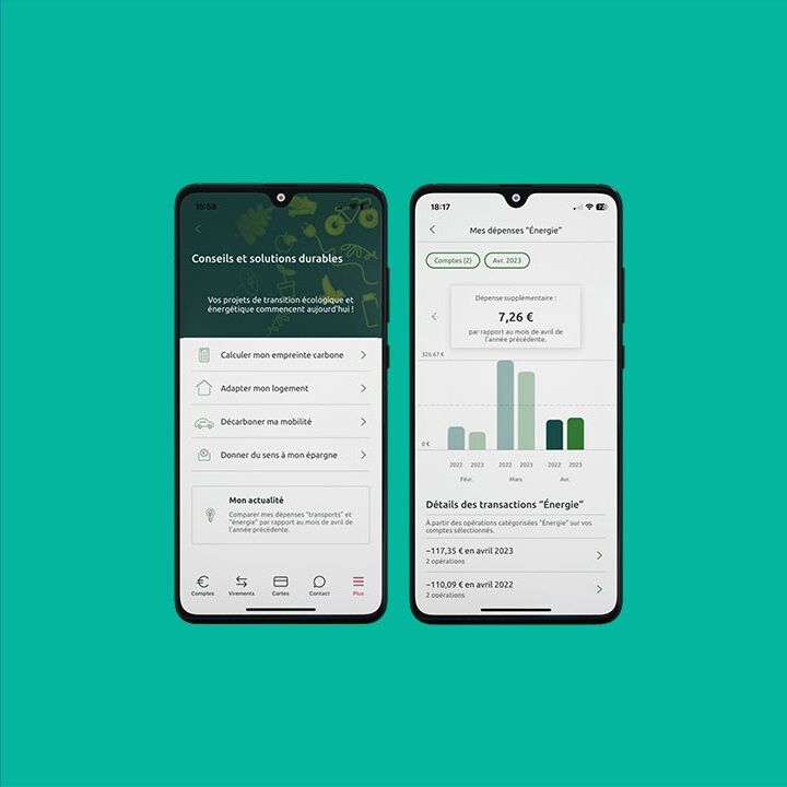 Banque des transitions, le Crédit Coopératif accompagne ses clients pour qu’ensemble, nous puissions agir pour limiter nos impacts environnementaux et préserver la planète. Retrouvez le coach green, un espace « conseils et solutions durables » dans votre application mobile, pour vous accompagner dans la réduction de votre empreinte carbone tout en préservant votre pouvoir d’achat.